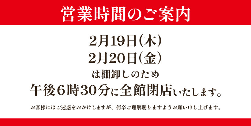 南館2~7階は18:30まで